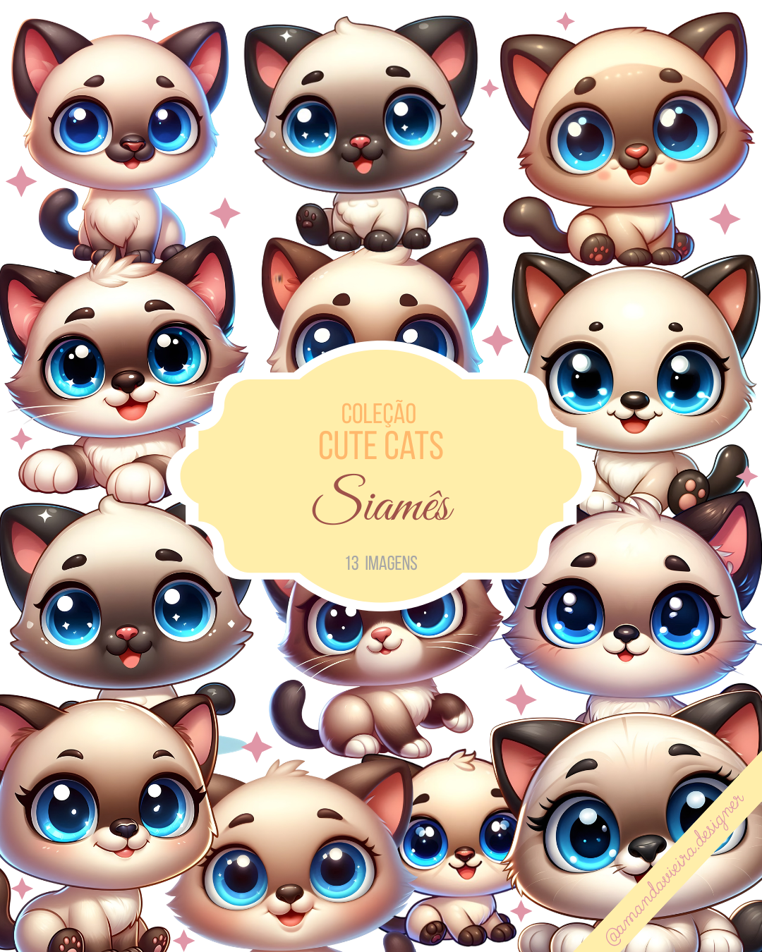 #kitdigitalsiames #kitdigital #papelariapersonalizada #cat #clipartsdigitais #estampasdigitais #arquivosdigitais